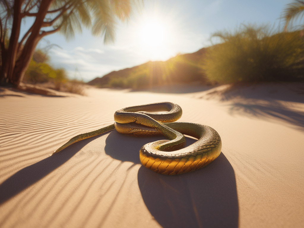I follow a gold snake down into desert sand and stay in a place where a proud bird dances around me and fans me with a green aspirin leaf
